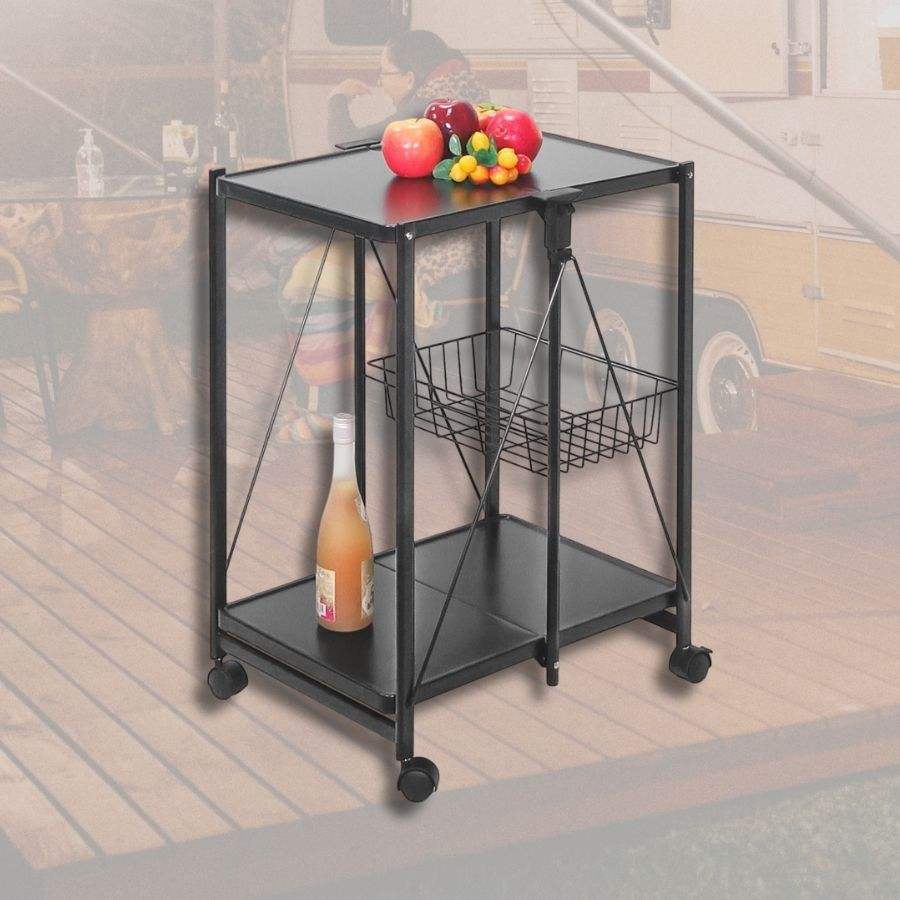 Wholesale Price Lightweight Metal Storage Serving Trolley Carts with Four Wheels Foldable Black Outdoor Use