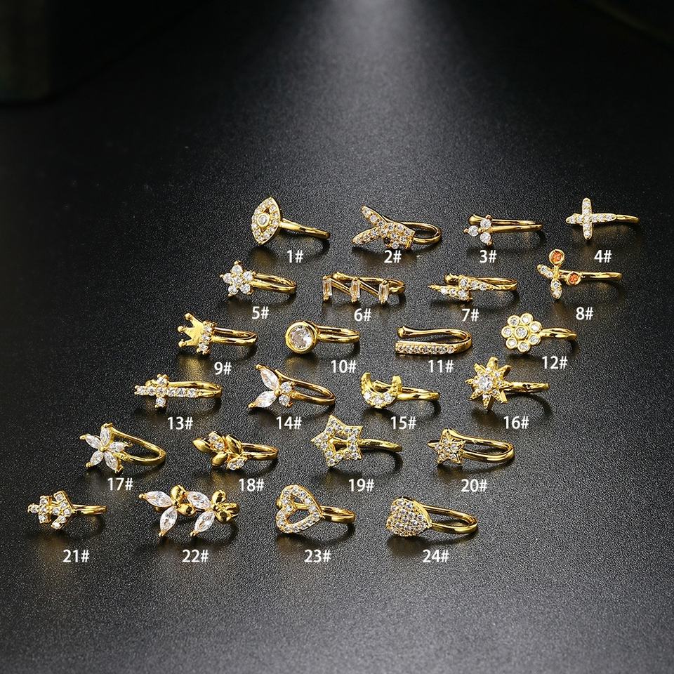 Nom du produit:Piercings de nez à clipser, plaqués or, anneaux de nez en acier inoxydable
