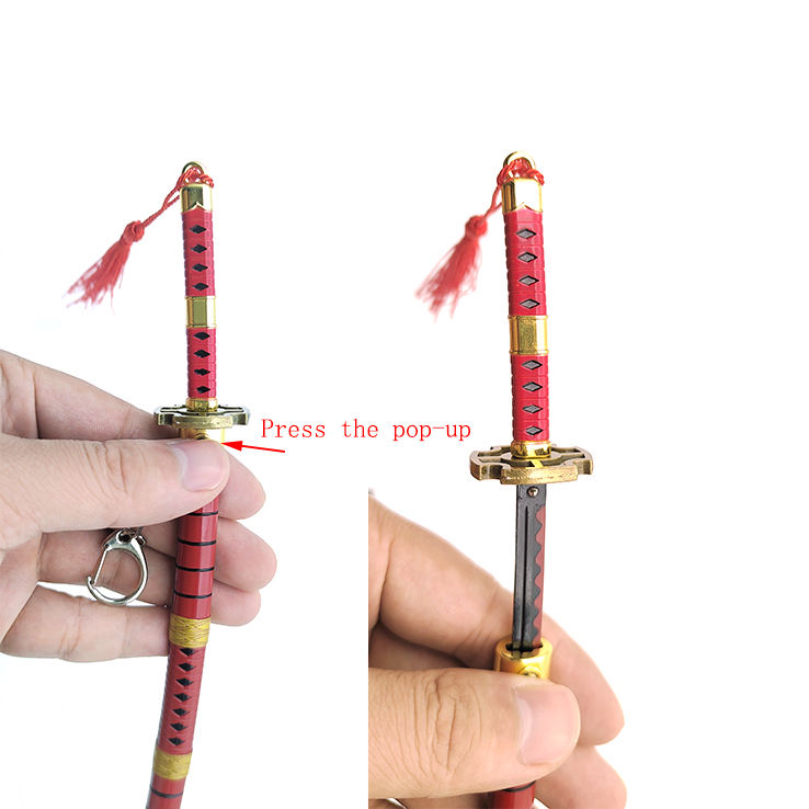 Vente en gros San dai Kitetsu Porte-clés mini Katana Pop Up en métal personnalisé d'une seule pièce