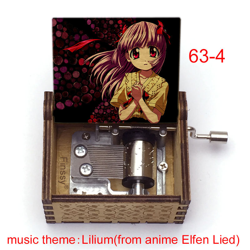 Boîte à musique à manivelle en bois Lilium, thème de la chanson de l'anime Elfen Lied, petite taille, vente en gros, pour cadeau de Saint-Valentin pour petite amie, 63