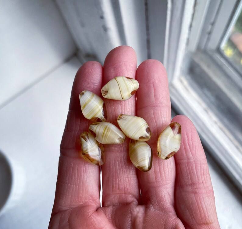 Vente en gros de perles de verre vintage tchèques marbrées blanches 15x10mm ovales alvéolées pincées et ovales pour bricolage de bijoux en cristal au chalumeau
