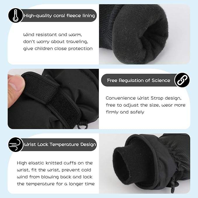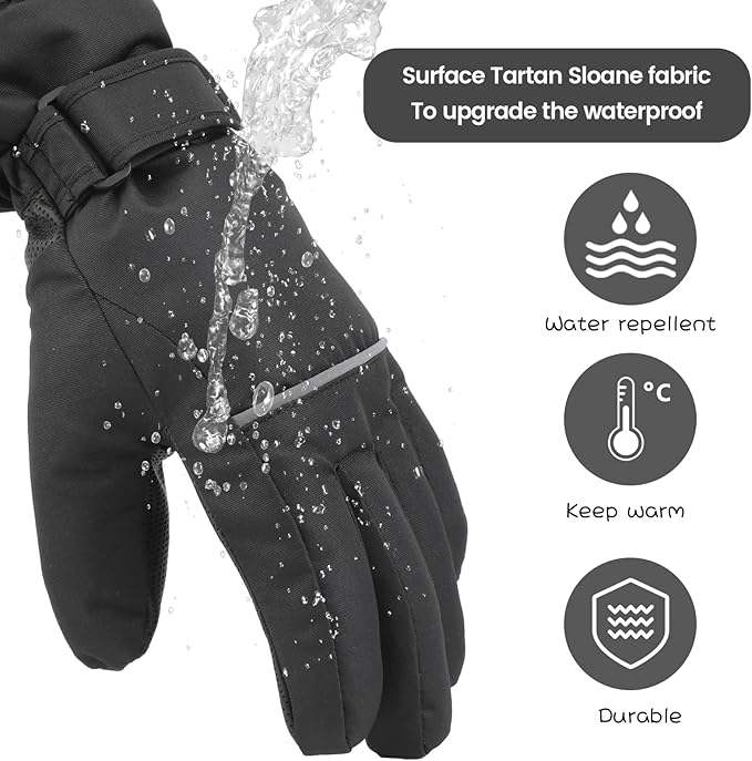 waterproof, Non-Slip, Adjustable Wrist Strap, Quick Drying, Moisture wicking, Full Finger, Self HeatingFeature