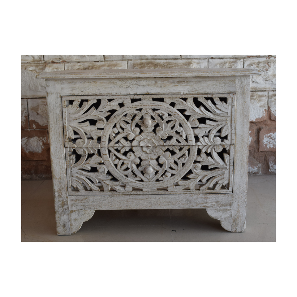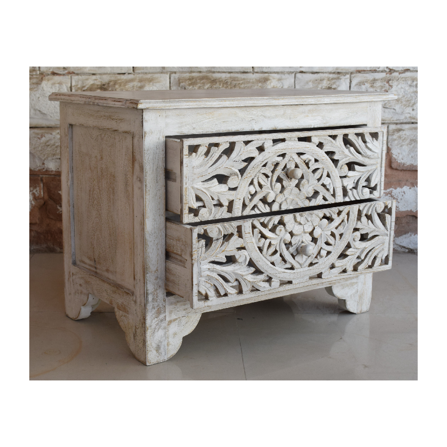 Product Name:Wooden 2 Carved Drawer Bedside Table