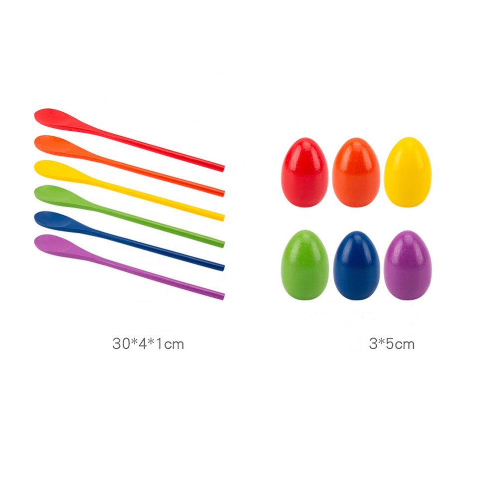 Wooden Rainbow SPOON EGG Balancing Game 6 Easter Eggs & Spoons Play Food Waldorf Toys