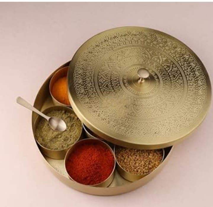 Fournisseur en vrac Boîte à épices en laiton au design tendance Boîte à épices de forme ronde 7 compartiments pour boîte de rangement d'épices avec couvercle