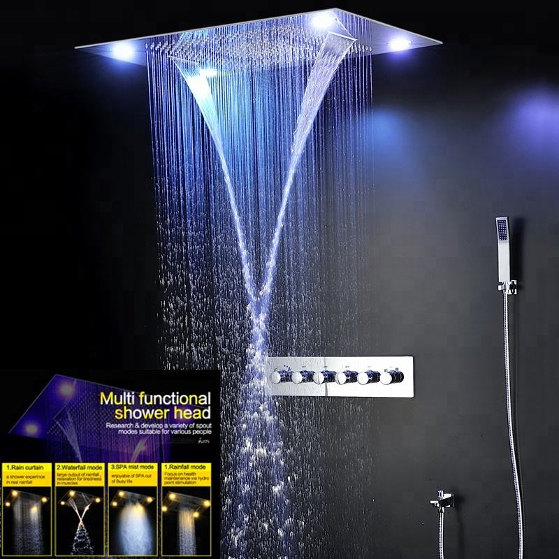 de Pluie Cascade Brouillard Ensemble de Douche Robinets De Douche de salle de Bain Haut Débit Thermostatique 5 Inverseur Bain