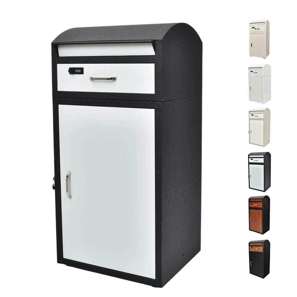 Grande boîte de livraison de colis extérieure en métal avec poteau en métal pour courrier mural antivol personnalisé pour la maison