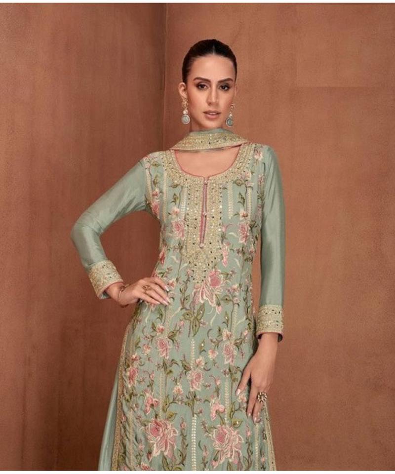 Robe Sharara pakistanaise formelle pour femmes de couleur bleue avec des manteaux modestes et un beau design de boutique