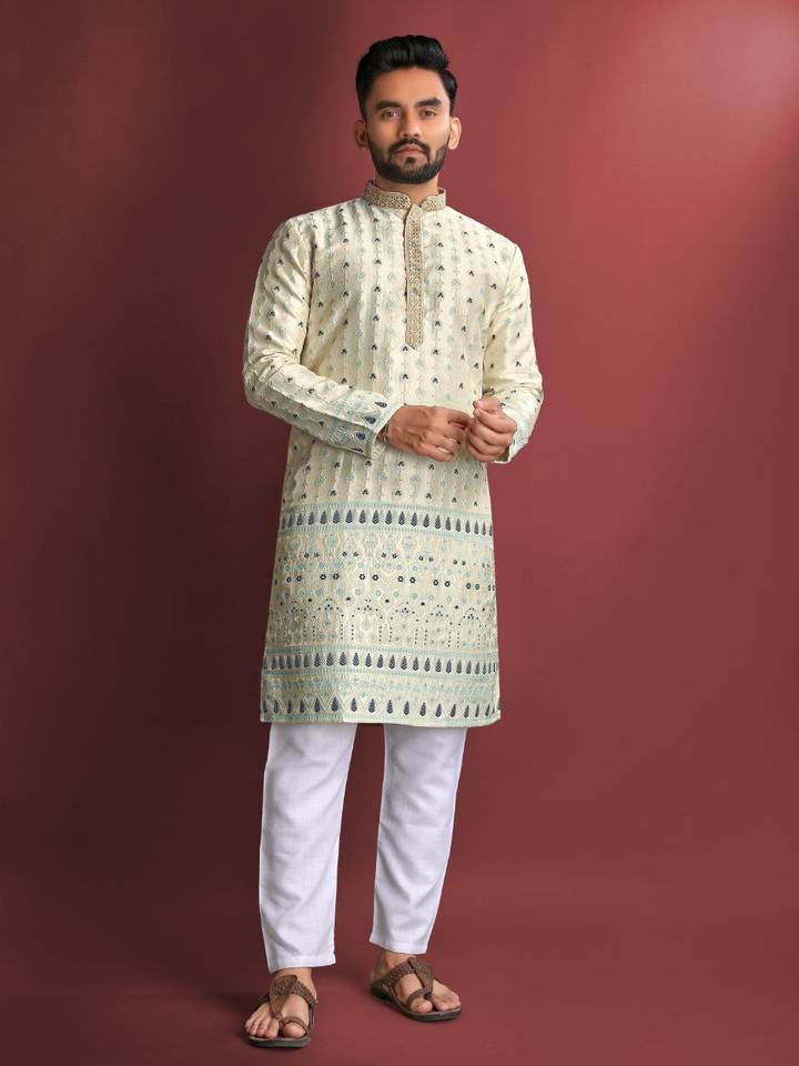 Kurta de soie élégant pour hommes ensemble avec bas en soie chudidar vêtements ethniques mariage traditionnel indien Designer Collection Kurta