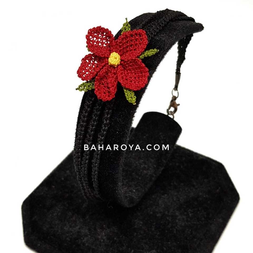İğne Oyası Üç Bantlı Tek Çiçekli Bileklik À la mode Sarı-Kırmızı-Siyah Çember Sarı-Kırmızı-Siyah Çember
