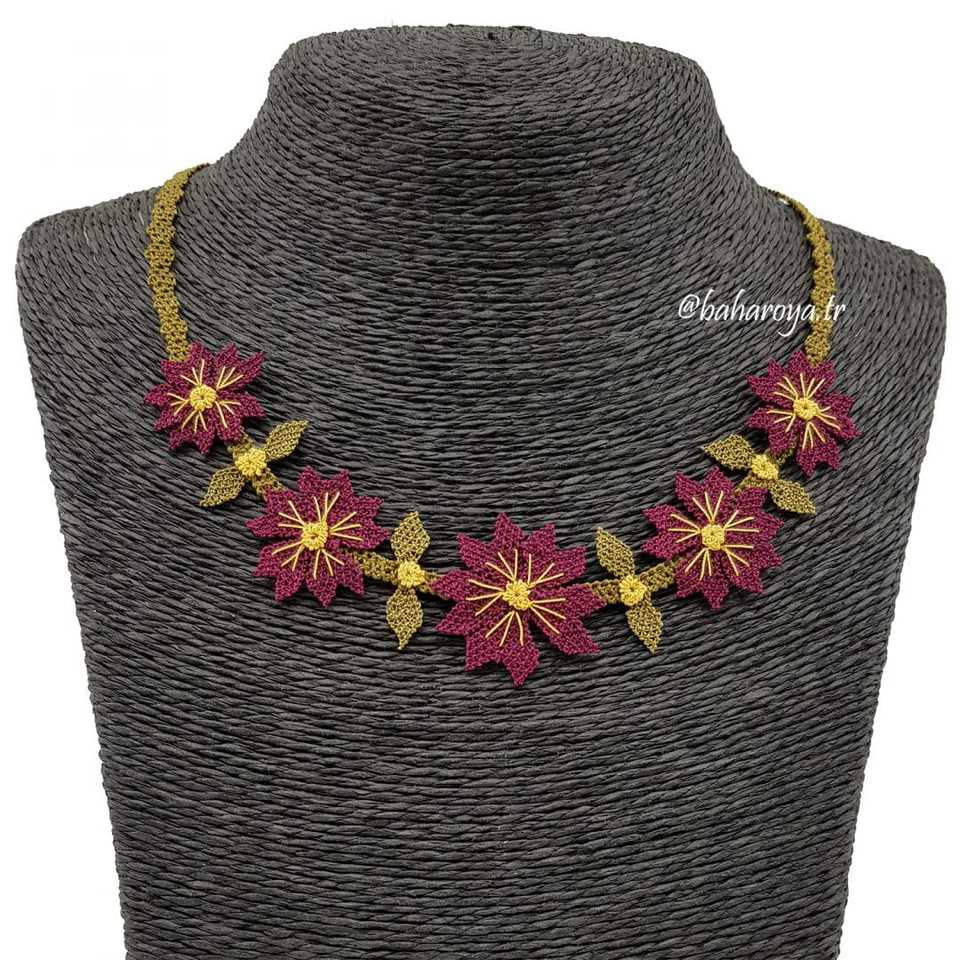 İğne Oyası Bahçe Çiçeği Kolye Mürdüm Fashionable Necklaces for Women