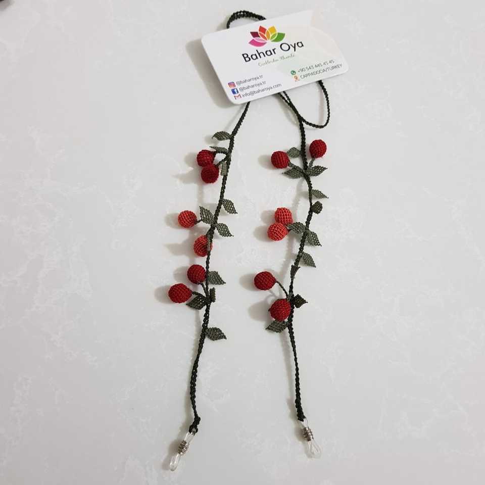 İğne Oyası Kiraz Gözlük İpi Kırmızı-Yavruağzı Siyah Sap Lunettes de vue pour le groupe d'âge plus jeune