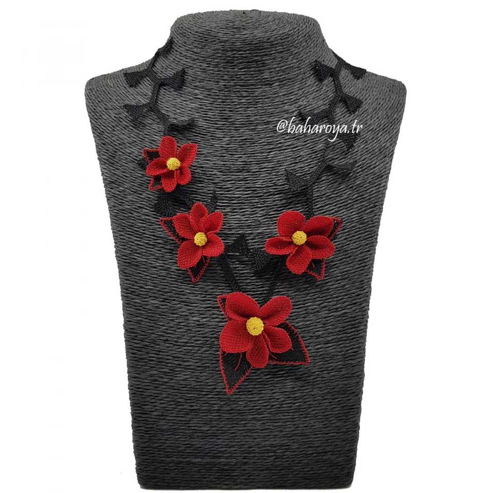İğne Oyası Müşerref Kolye Kırmızı-Siyah Moda İğne Kolye