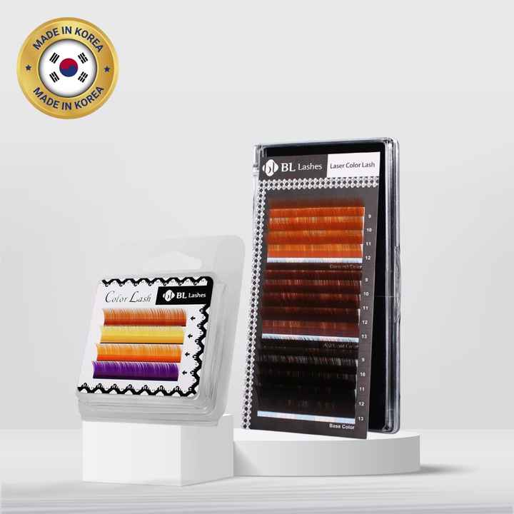 [BL Lashes] Extensions de cils en vison couleur 4 lignes, mélange PBT coréen premium (courbures B, C, D, J) (0,09~0,13 mm) Fibre de haute qualité