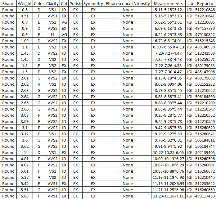 Diamond Certificates:International Gemological Institute