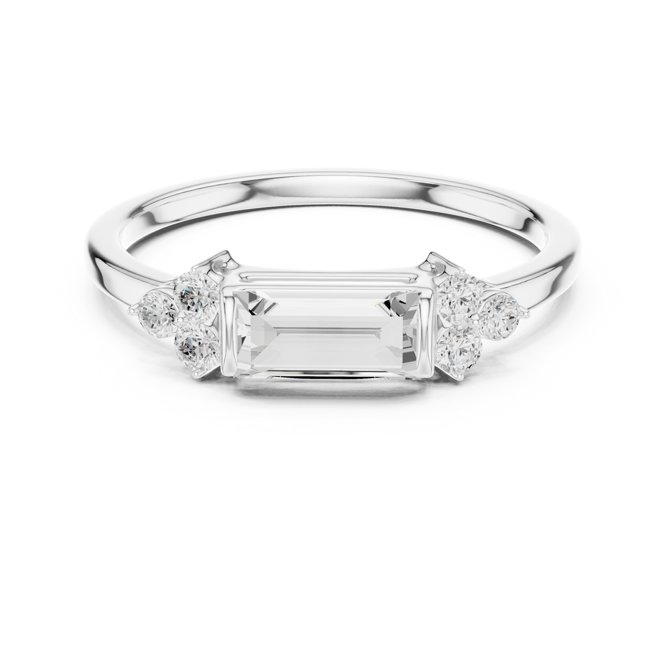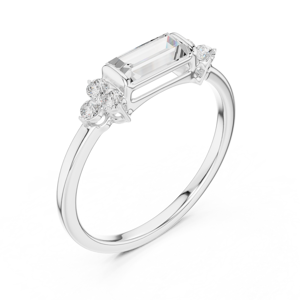 Bague de fiançailles en argent 925 plaqué rhodium avec diamant de laboratoire de 0,15 carat, taille émeraude, couleur D. E.