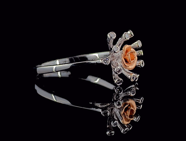 Bague statement en diamant de laboratoire de 0,15 CTW, deux tons, certifiée SGL, or blanc et rose massif 14 carats