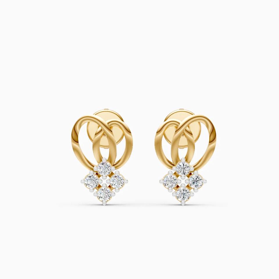 Boucles d'oreilles clous en diamant de laboratoire de 0,15 ct, serti en grappe entrelacée, en or jaune, blanc et rose 9 carats