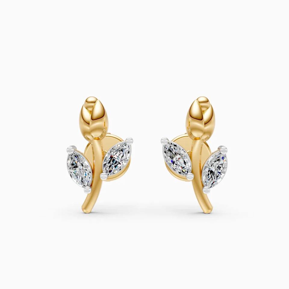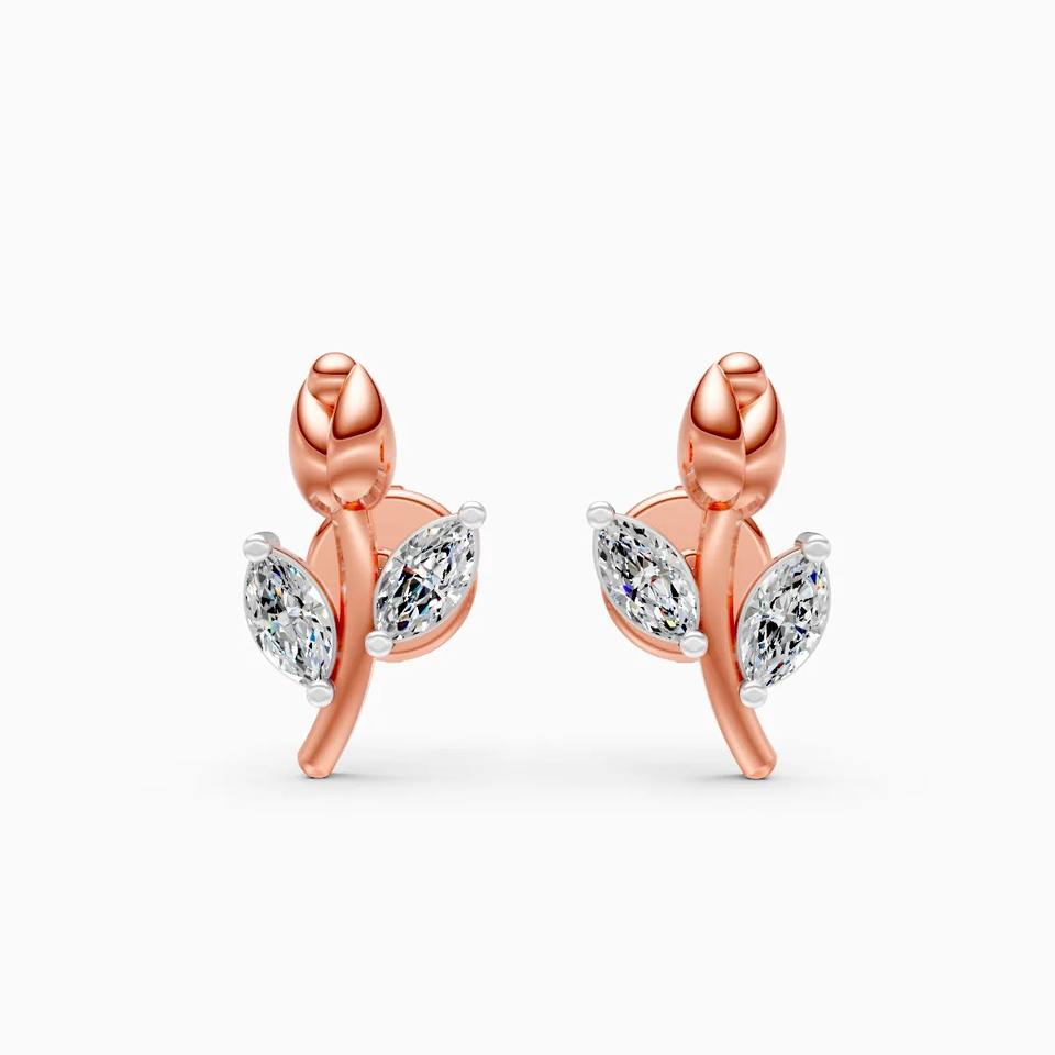 Boucles d'oreilles clous en diamant rose cultivé en laboratoire de 0,16 ct en or jaune, blanc et rose 9 carats