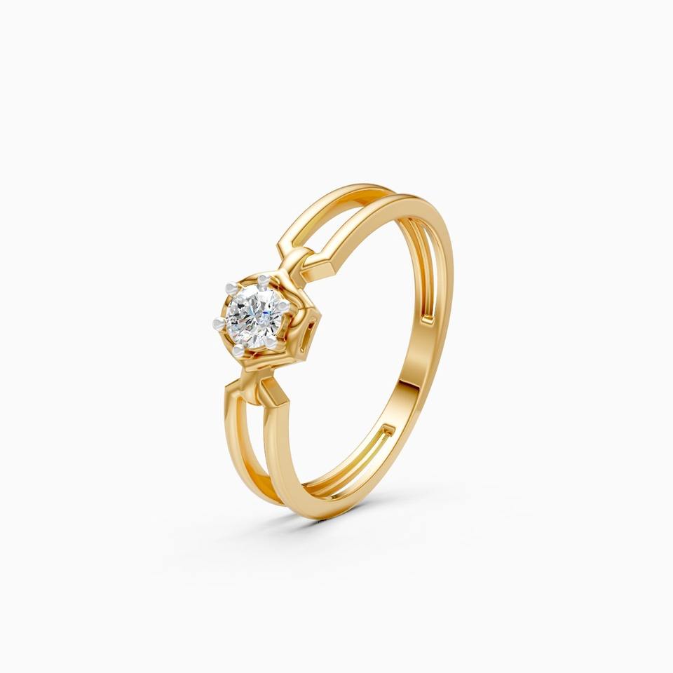 Bague solitaire à bande fendue avec diamant de laboratoire de 0,16 ct en or jaune, blanc et rose 9 carats