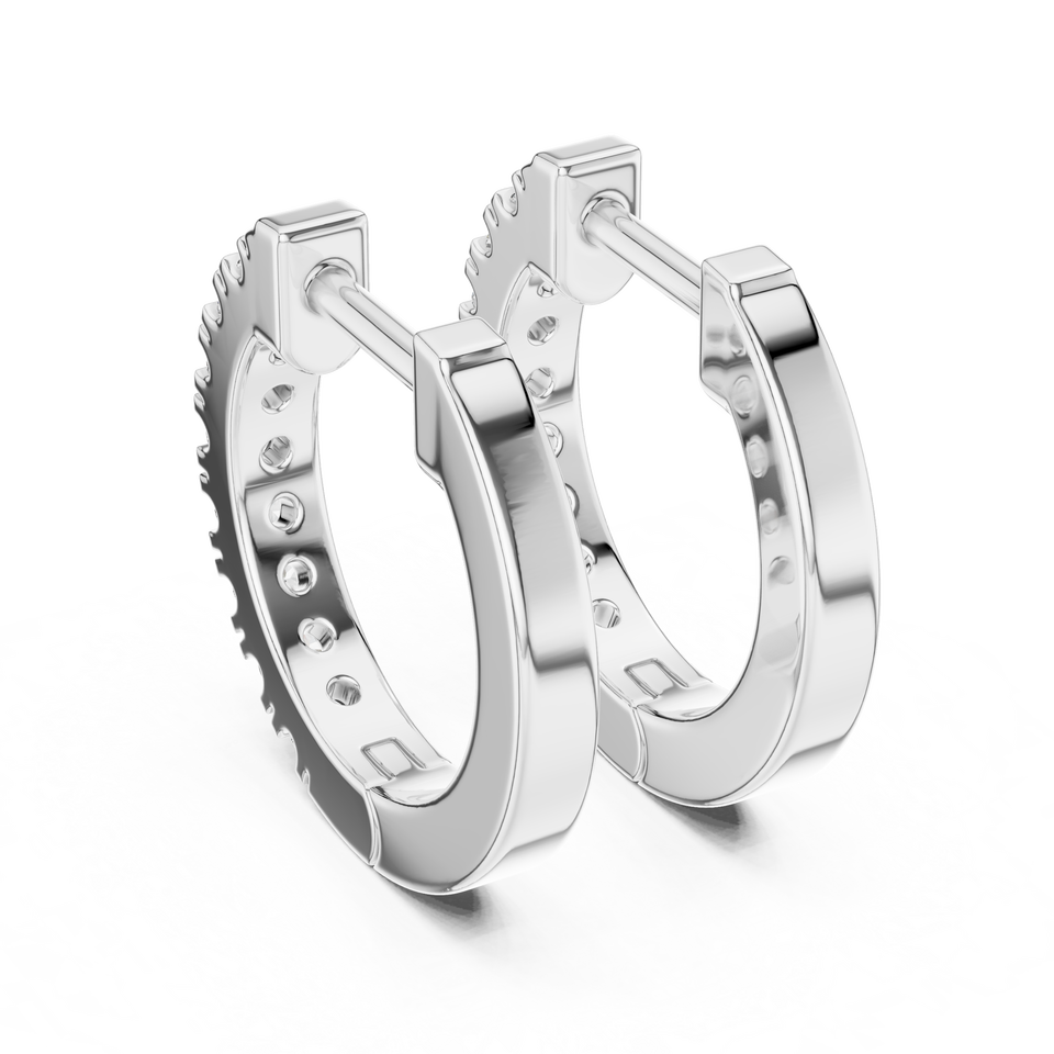Boucles d'oreilles créoles de luxe en or blanc 14K plaqué rhodium avec diamant de laboratoire CVD de 0,24 carat à taille brillant rond