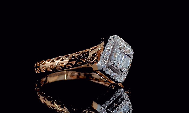 Bague de fiançailles en or massif 14 carats avec halo de diamants de laboratoire taille baguette de 0,25 CTW, certifiée SGL