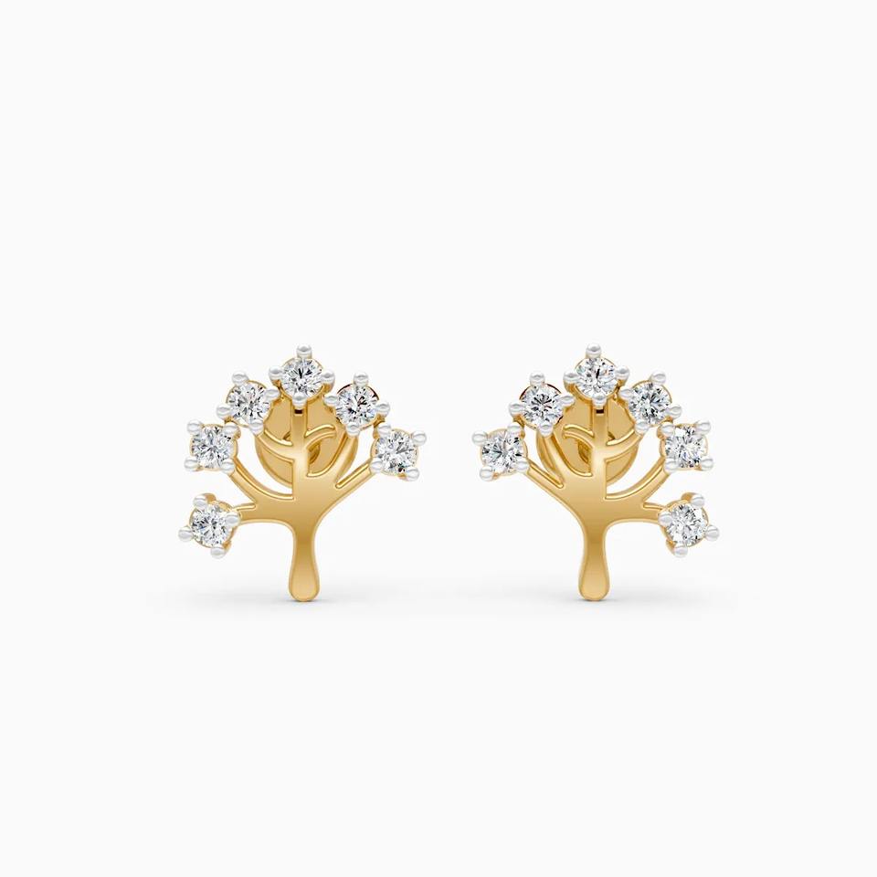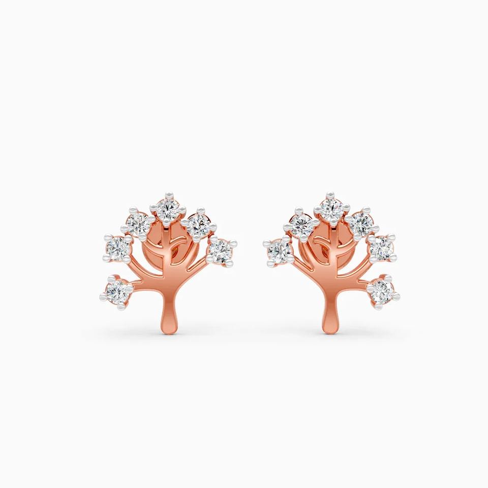 Boucles d'oreilles en forme d'arbre avec diamants cultivés en laboratoire de 0,253 ct en or jaune, blanc et rose 9 carats