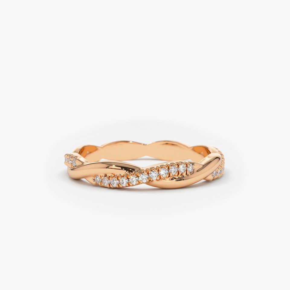 0.27 Carat Weight 14K Gold Weaving Braid Eternity Diamond Ring Lab Grown Diamonds Ring For Fancy outfit Designs Women's