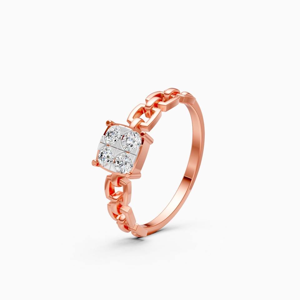 Bague à chaîne avec cluster de diamants cultivés en laboratoire de 0,27 ct en or jaune, blanc et rose 9 carats