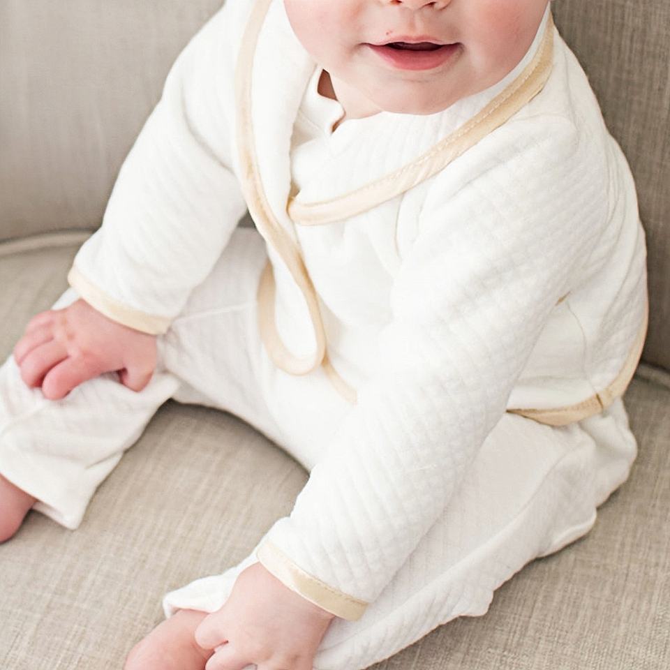 0-3 Months Baby Boy Turn Collar Jacket with Champagne Silk Trim 3-Piece Cotton Outfits Pockets Toddler Baptism Baptism Outfits