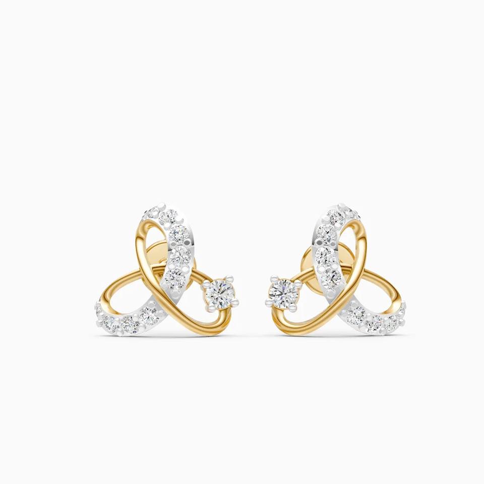 Boucles d'oreilles à clous en diamant cultivé en laboratoire de 0,324 ct, entrelacées, en or jaune, blanc et rose 9 carats