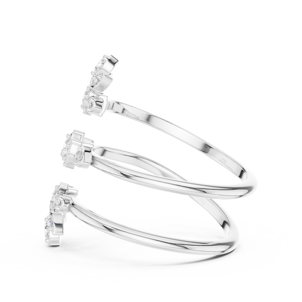 Bague de Mariage Double Fleur Ouverte 0,36 CT en Argent 925 Plaqué Rhodium, Luxe Certifié IGI, Spirale Florale Enveloppée de Diamants pour Mariages, Forme Poire