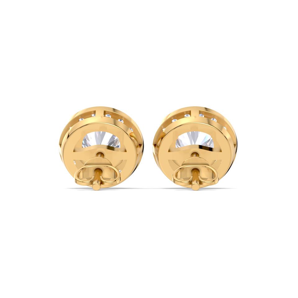 Boucles d'oreilles clous halo en diamant rond de 0,38 carat cultivé en laboratoire, en or jaune, blanc et rose 18 carats, certifiées IGI, sertissage pavé classique, bijoux fins