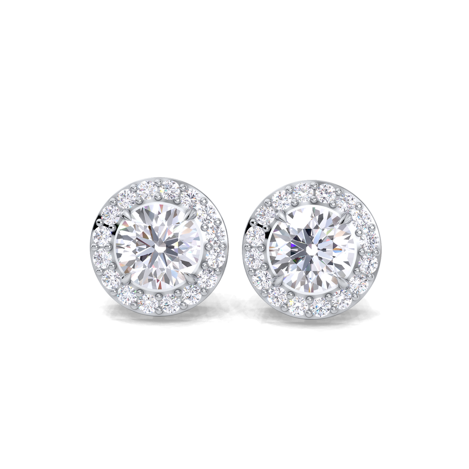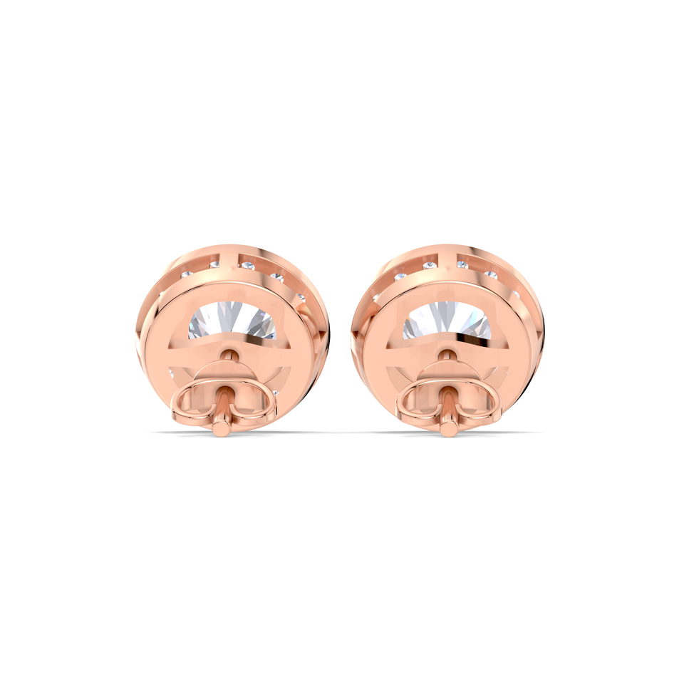 Boucles d'oreilles clous halo en diamant rond de 0,38 carat cultivé en laboratoire, en or jaune, blanc ou rose 14 carats, certifiées IGI, sertissage pavé classique, bijoux fins