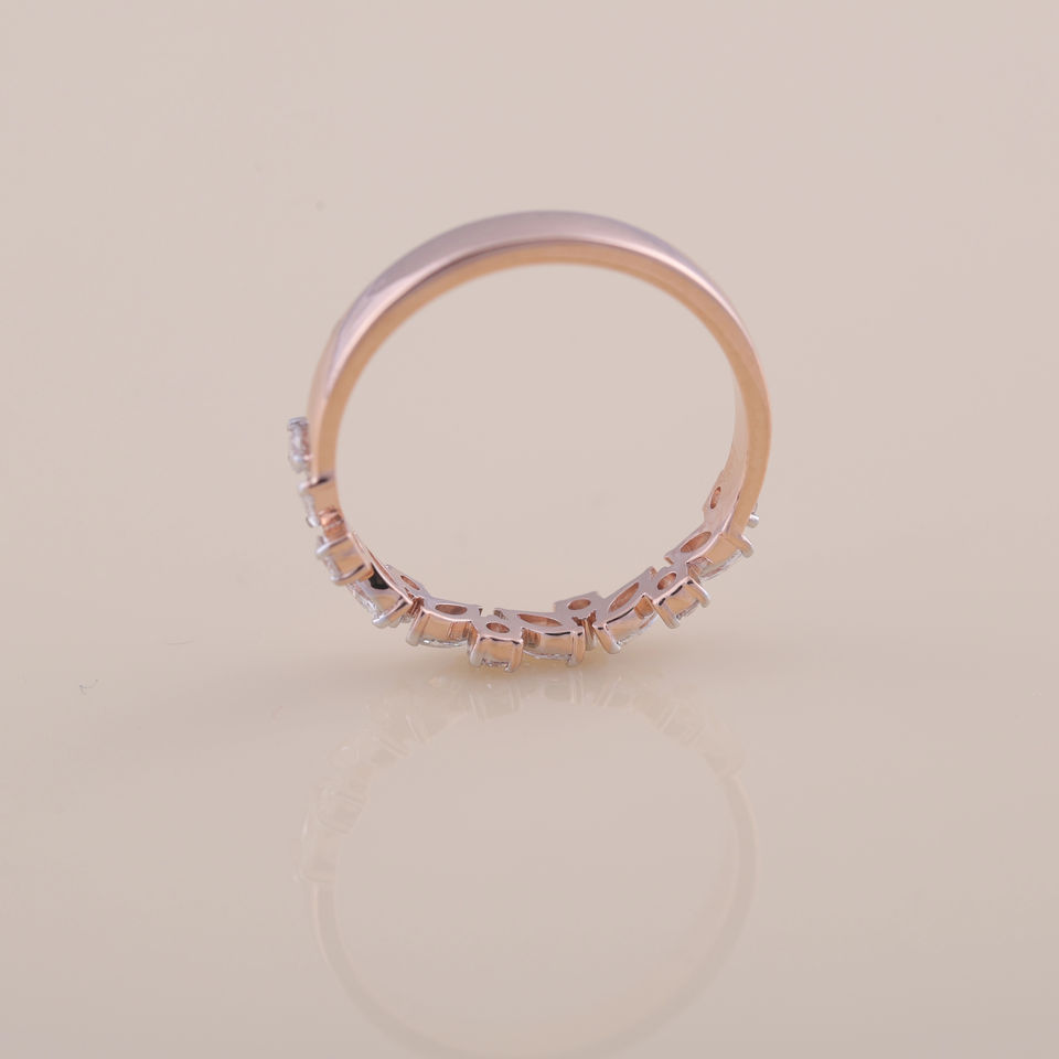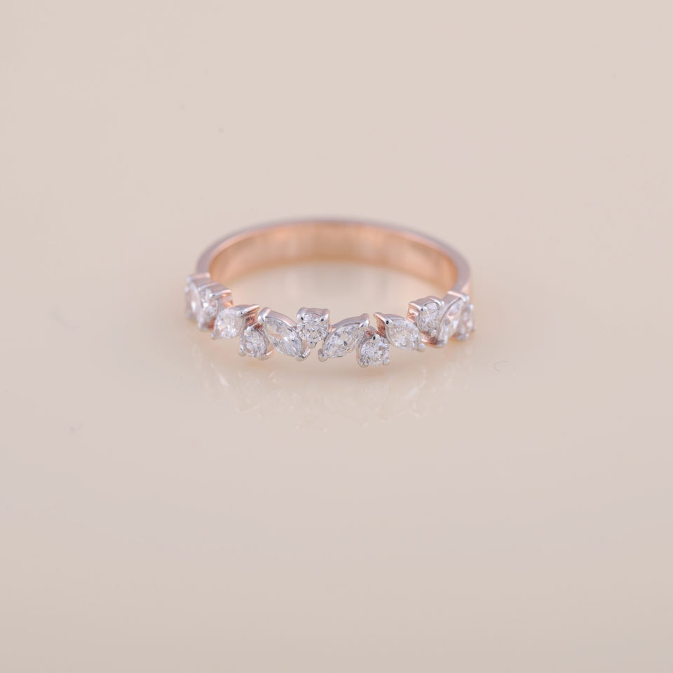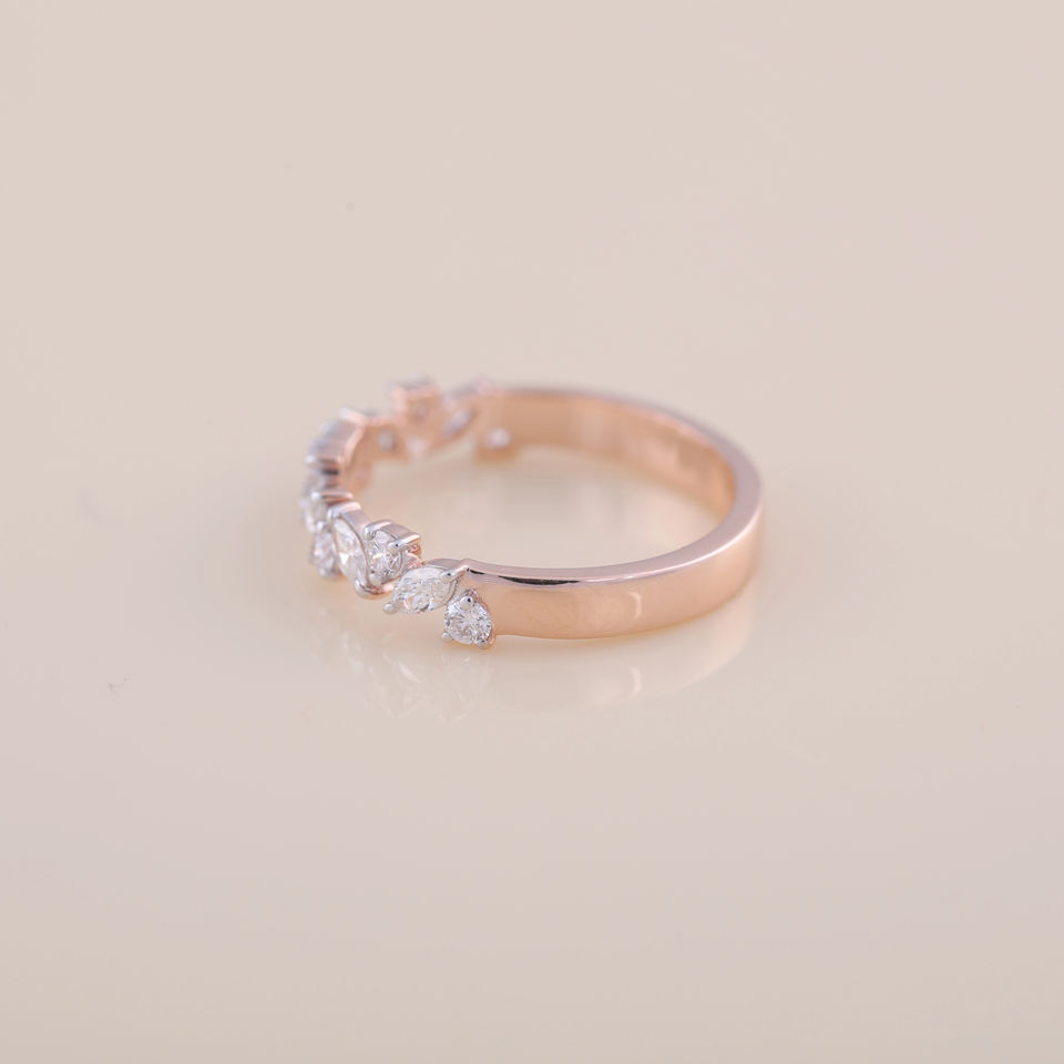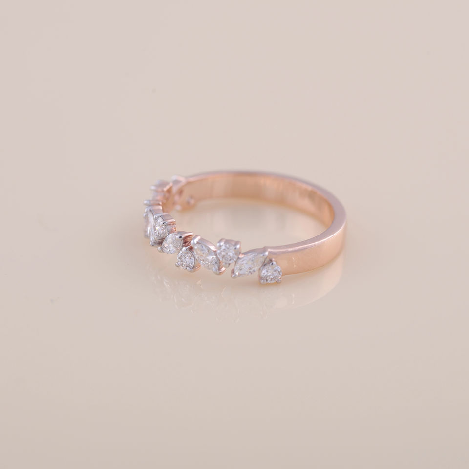 Bague demi-éternité en diamants marquise et ronds certifiés IGI en or rose, jaune et blanc 18 carats