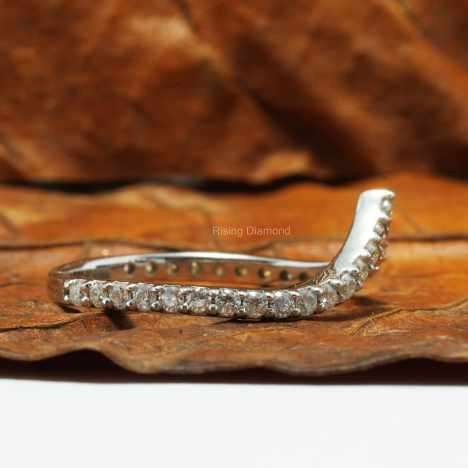 Bague de mariage et cadeau d'anniversaire en or blanc avec diamant de laboratoire rond de 0,48 carat, pureté VS, certifié IGI, sertie en forme de V