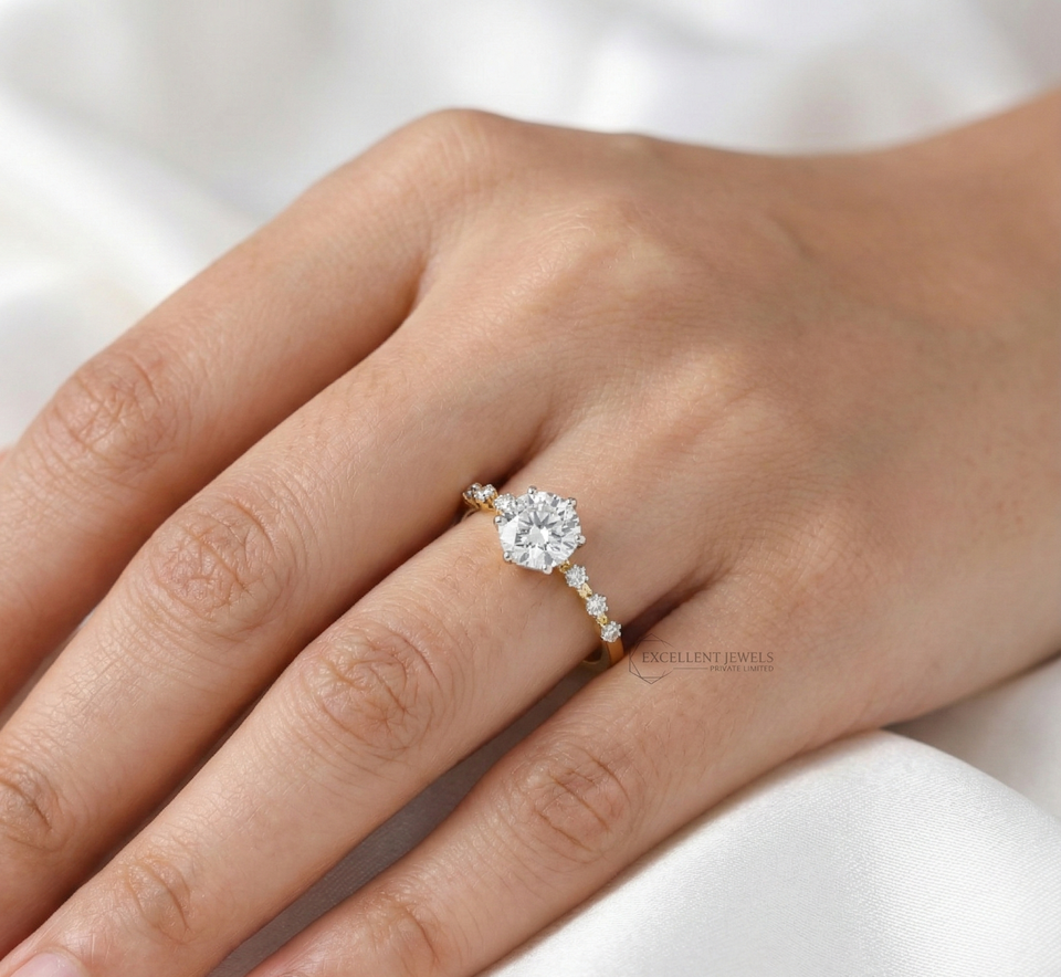 Side Diamonds:Round - 0.07CT - 6 PCS - 1.35mm - E - HPHT - Non Certified