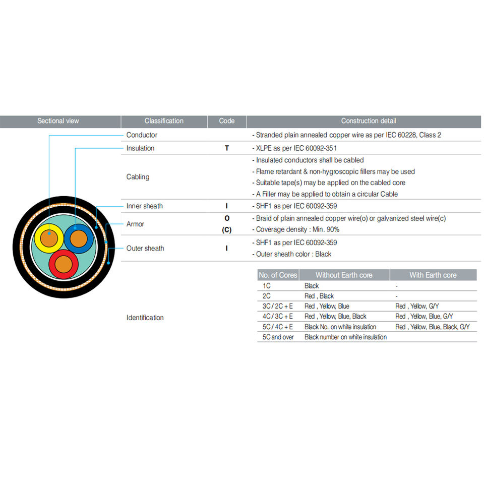 Armour:Braid of plain annealed copper wire(o) or galvanized steel wire(c)