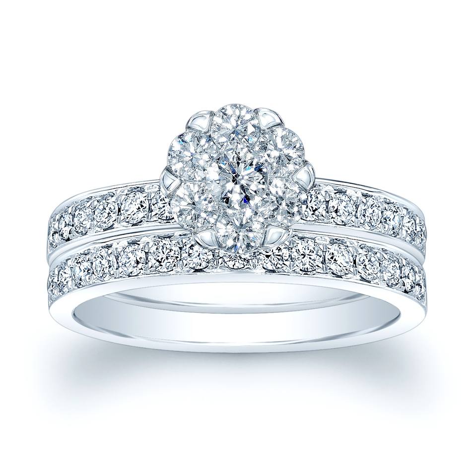 Ensemble de bagues de mariage florales en diamant naturel rond véritable 0,60 TCW | Bague en diamant sertie sous pression pour femme, bijoux fins, cadeau d'anniversaire