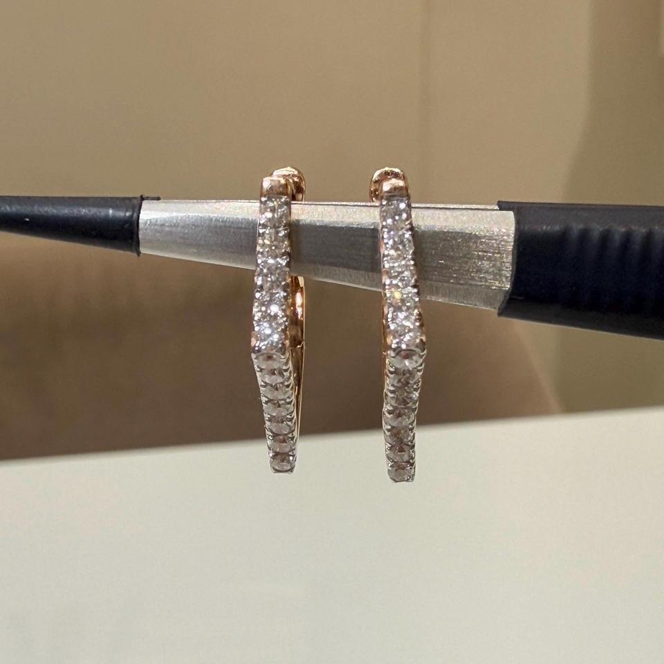 Boucles d'oreilles créoles minimalistes en or 14K avec diamant de laboratoire de 0,60 ct, design géométrique, 24 pierres, certifiées IGI, bijoux de mariée élégants