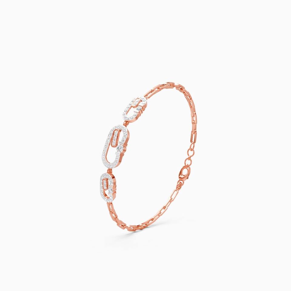Bracelet à maillons avec breloques en diamants de 0,63 ct cultivés en laboratoire, style empilé, en or jaune, blanc et rose 9 carats