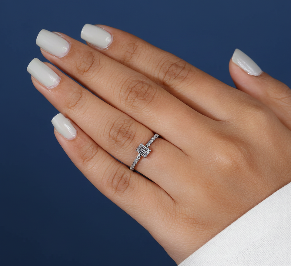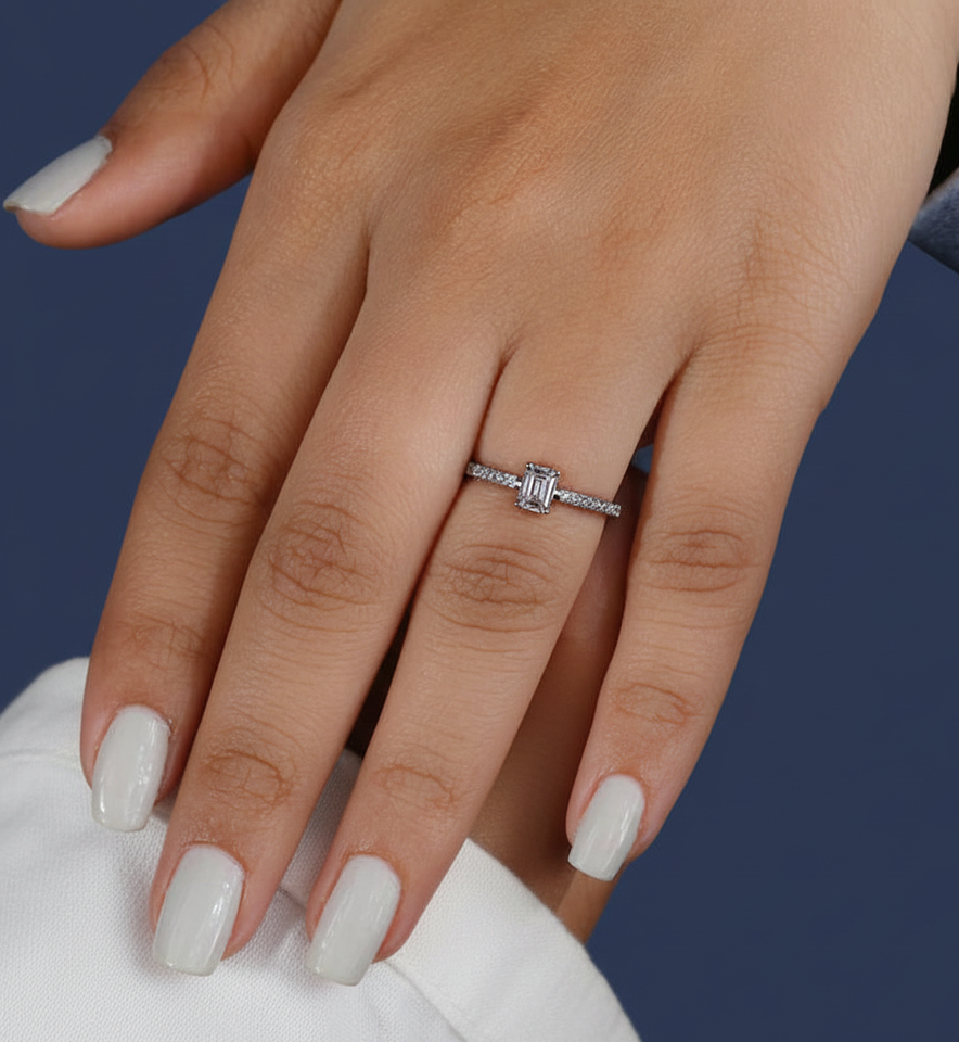 Nom du produit:Bague de fiançailles avec diamant de laboratoire taille émeraude