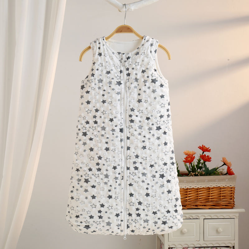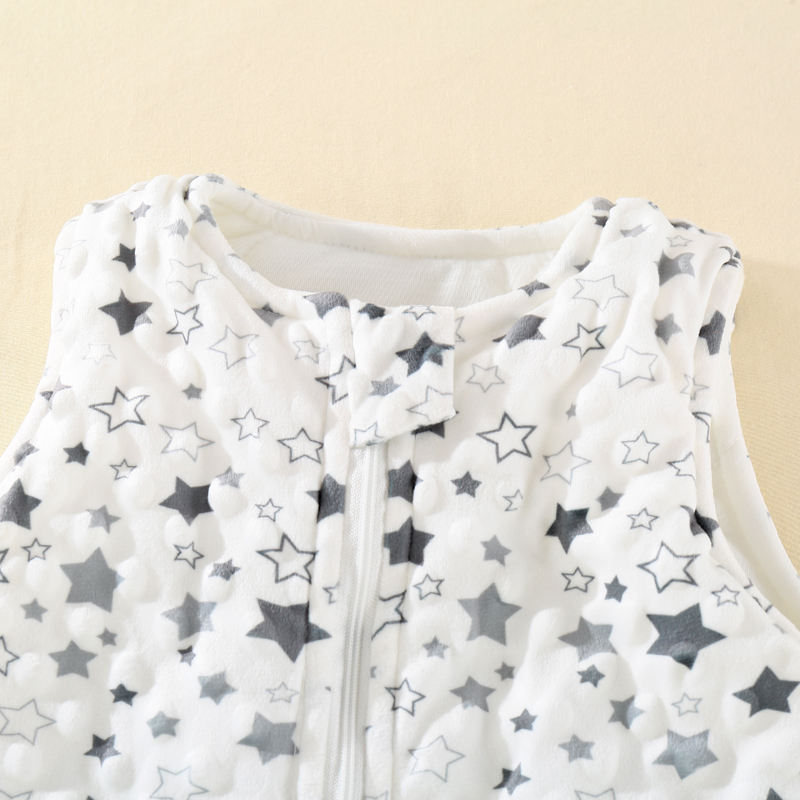 Gigoteuse sans manches en polyester doux et confortable pour nouveau-né (0-6 mois) avec imprimé étoiles, anti-coup de pied, pour printemps et automne