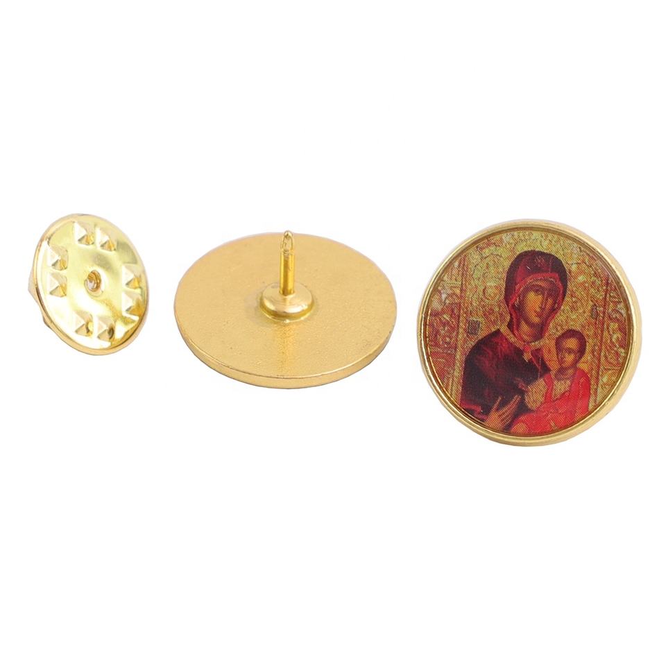 0.7 pouces ton or rond grec chrétien orthodoxe vierge marie de la Passion Panagia Soumela épinglette métal religieux moulé Style