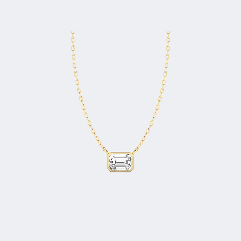 Collier pour femme en or plaqué 10 carats avec diamant solitaire taille émeraude de 0,80 CTW, clarté VVS2 et couleur E, serti clos, design élégant