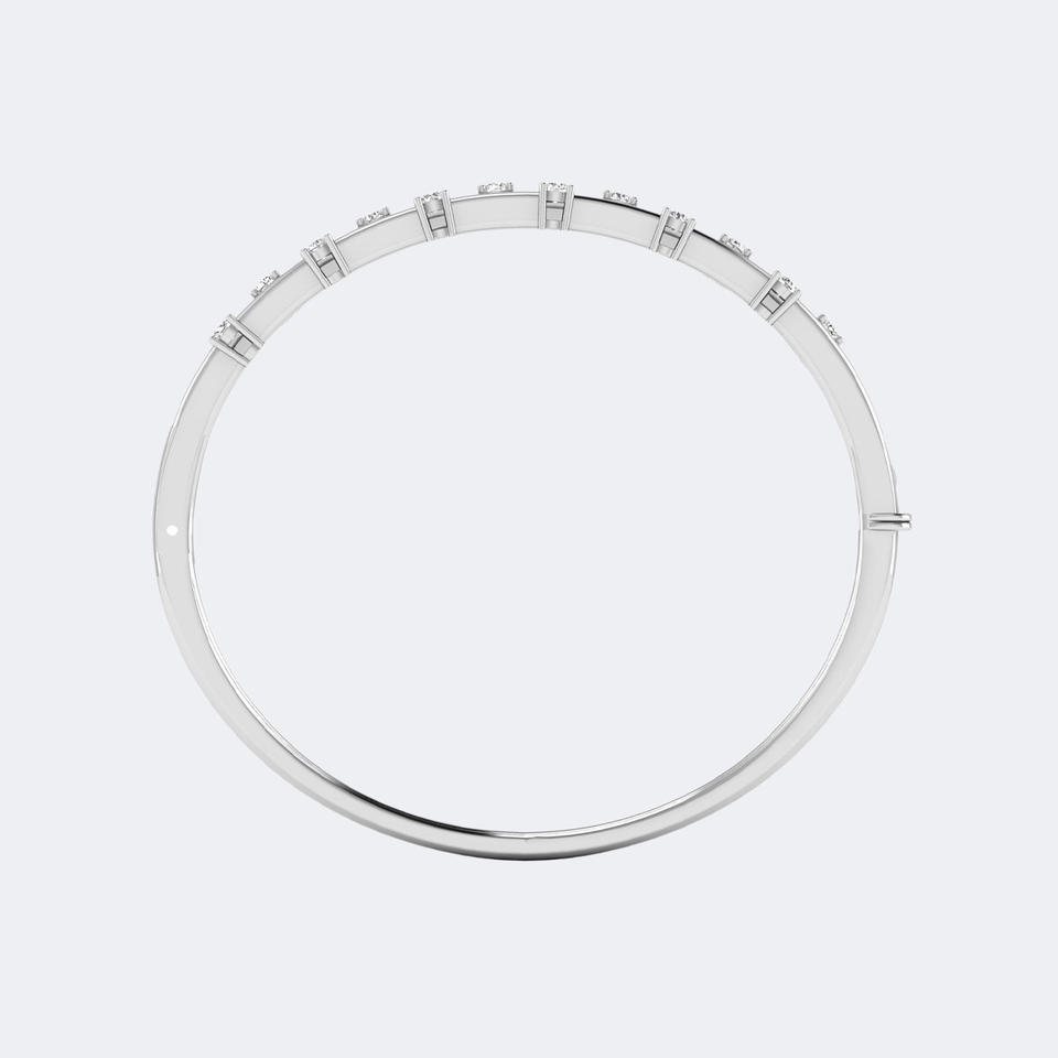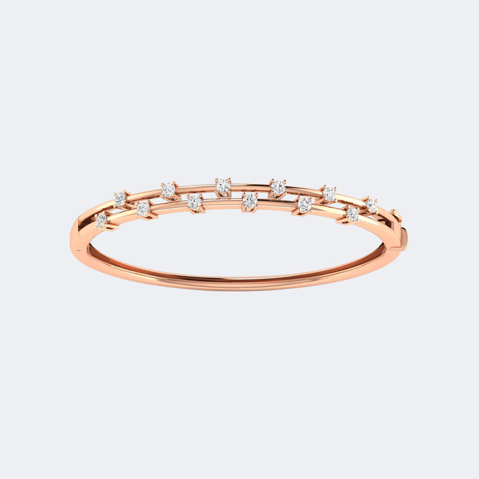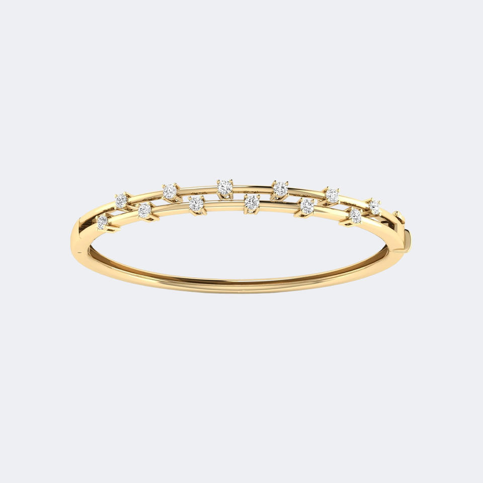 Bracelet jonc double rangée de diamants ronds 0,876 carats en or 14 carats, diamants de laboratoire couleur E-F, pureté VVS2, sertis à griffes, bijoux de luxe pour femme