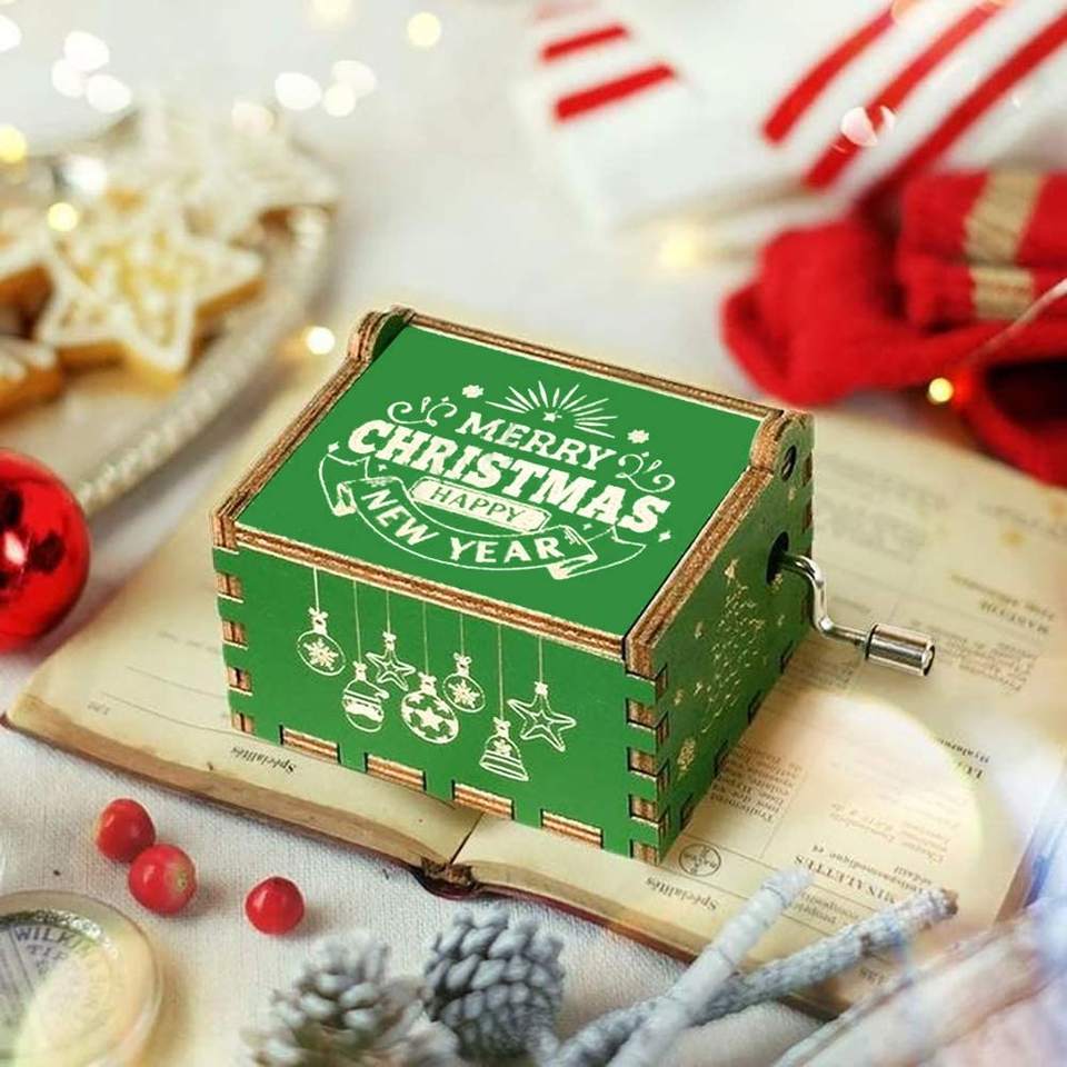01 prix d'usine boîte cadeau musicale cadeau musical à manivelle liquidation 30 Notes en bois chants de Noël boîte à musique personnalisée