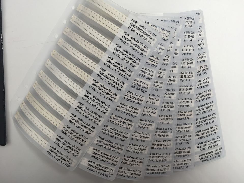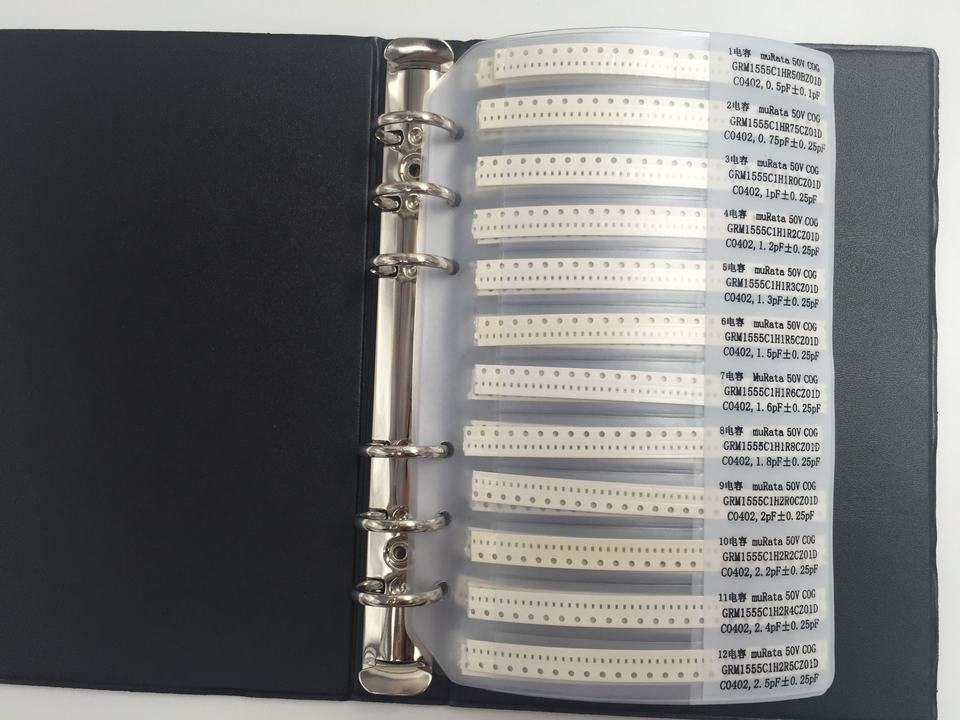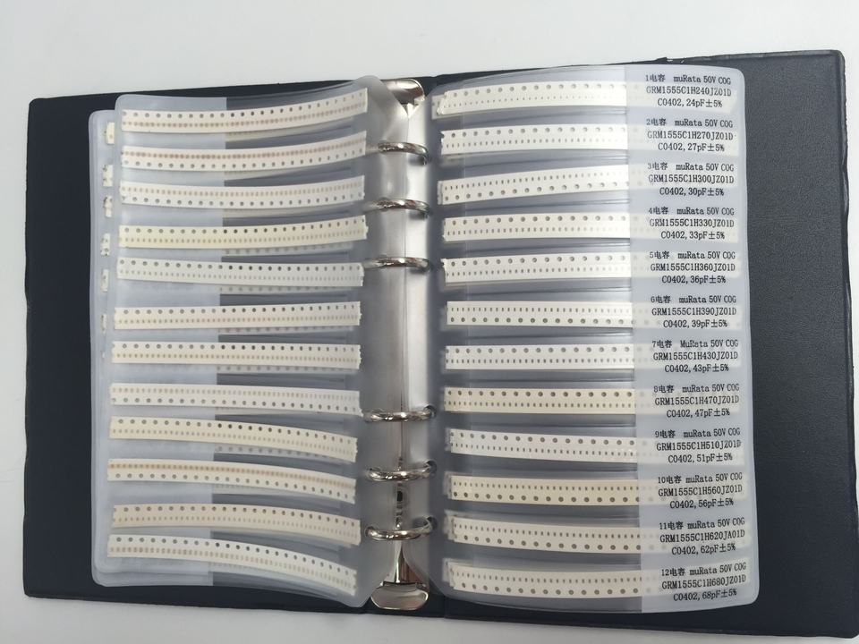 Livre d'échantillons de condensateurs 0402 0.5PF-1UF Montage en surface 80 valeurs*50 pièces Livret de résistances à puce SMD Assortiment de dossiers