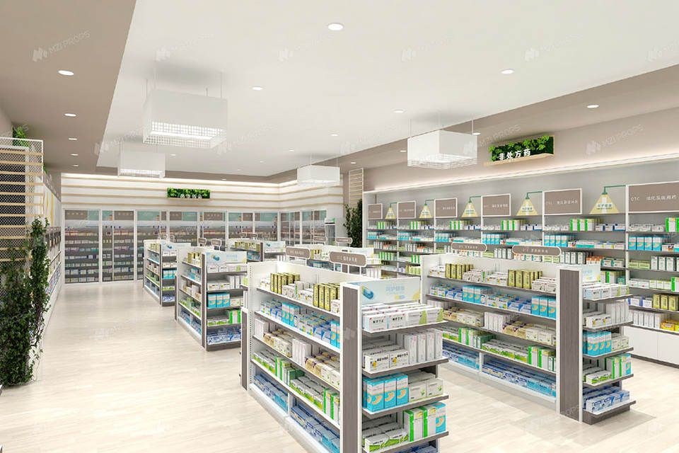 Affichage des marchandises:Présentoir de pharmacie, Présentoir à médicaments