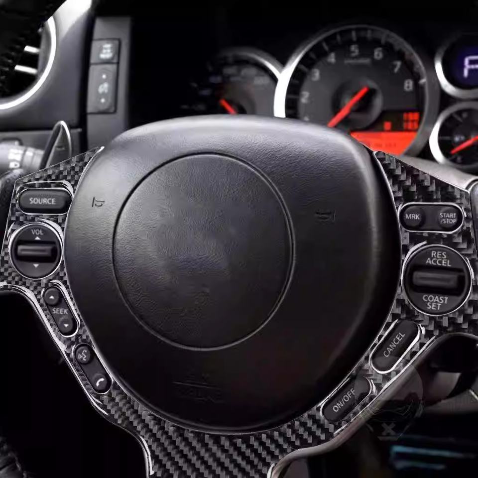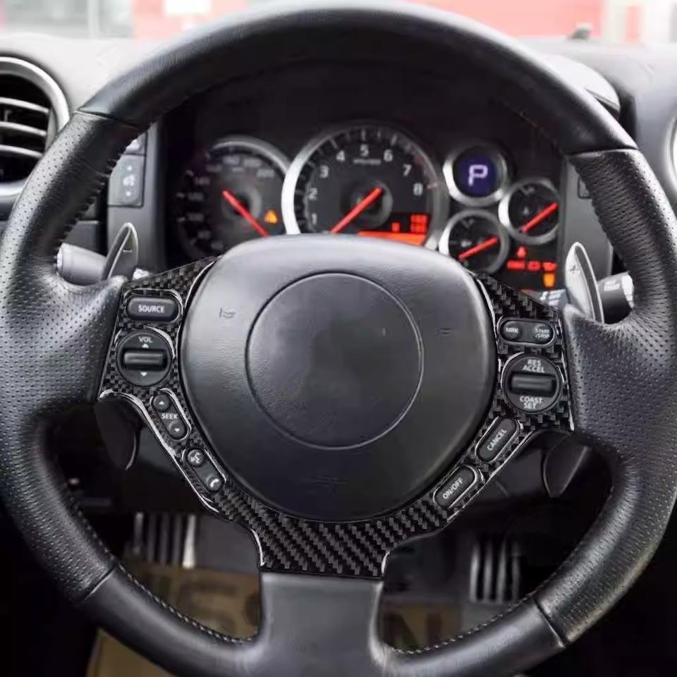 08-16 pour les accessoires de modification de décoration intérieure des boutons de volant pour volant en fibre de carbone Nissan GTR R35